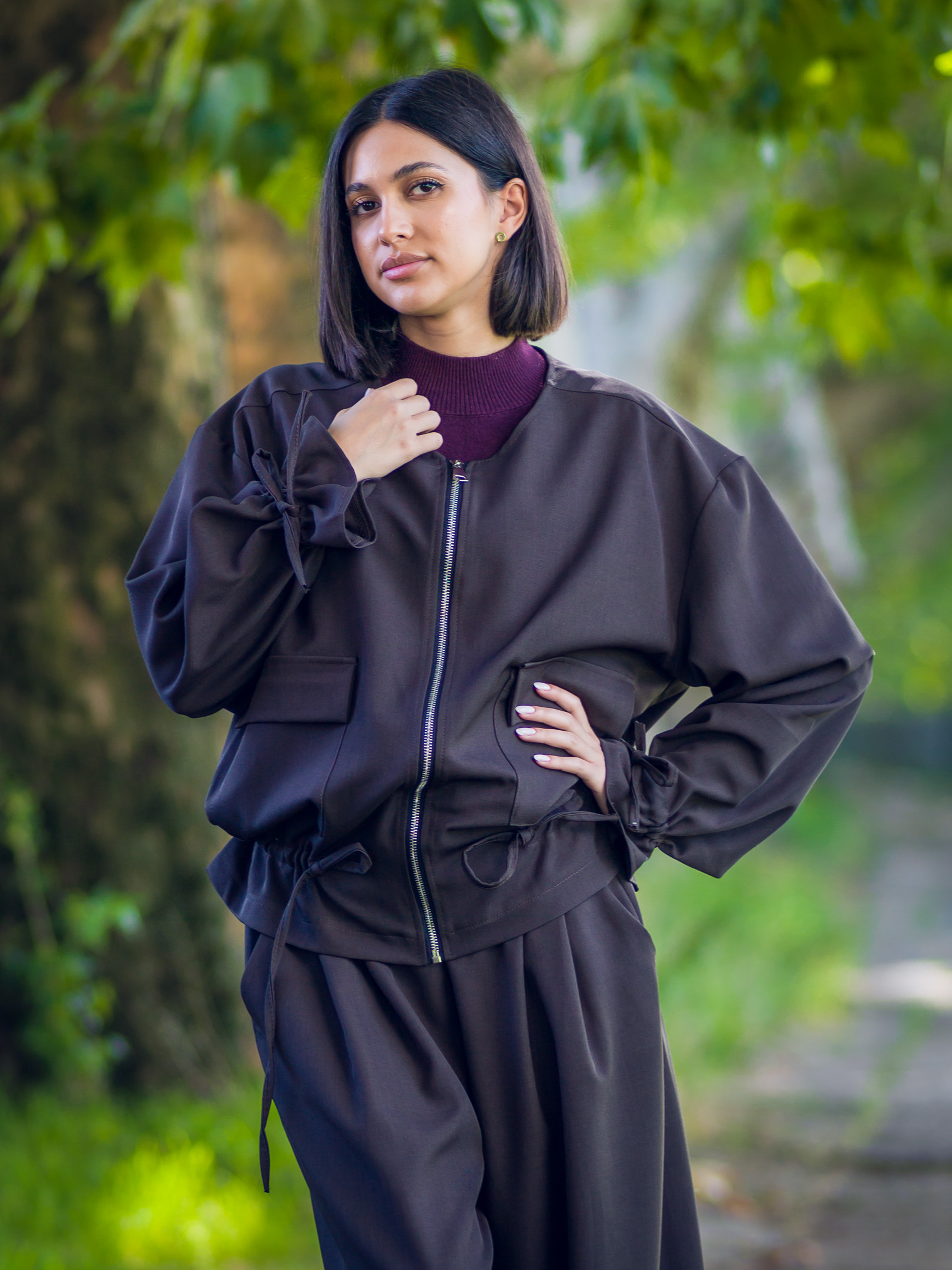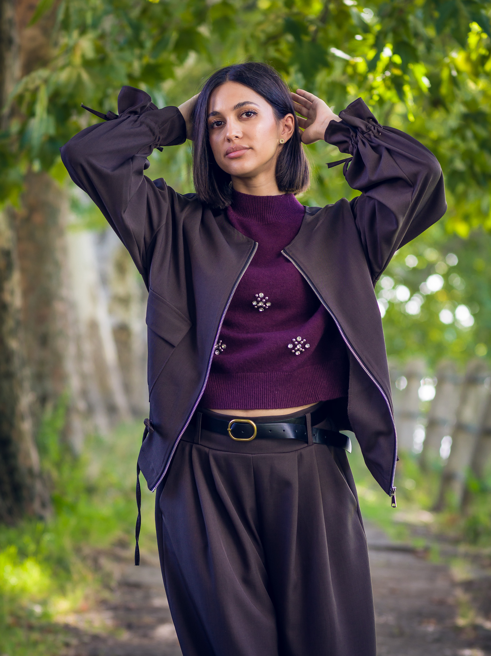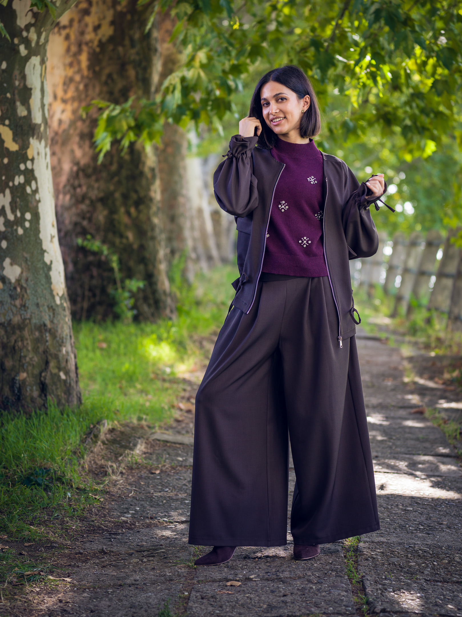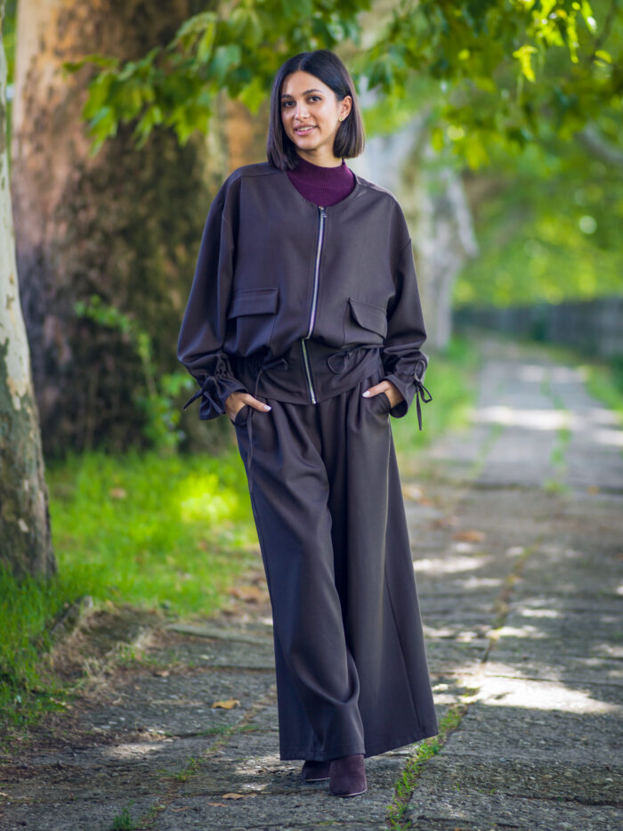 Krásny nohavicový komplet . Komplet sa skladá z nohavíc a budy v trendy strihu tejto sezóny. Nohavice majú v páse gumičku, takže sa krásne prispôsobia postave, po bokoch majú vrecká. Trendy kúsok Made in Italy, ktorý môžeš nosiť spolu aj samostatne.