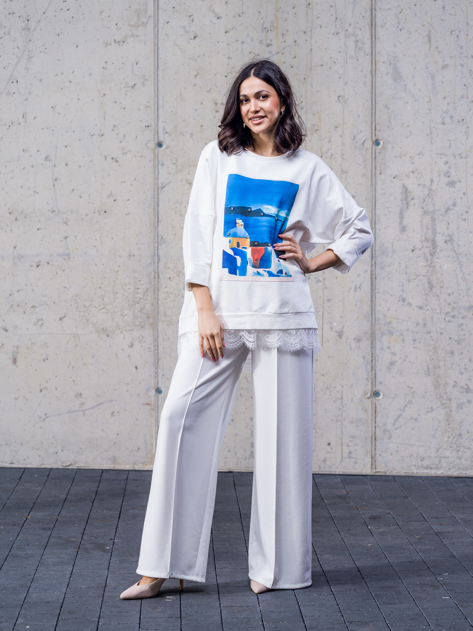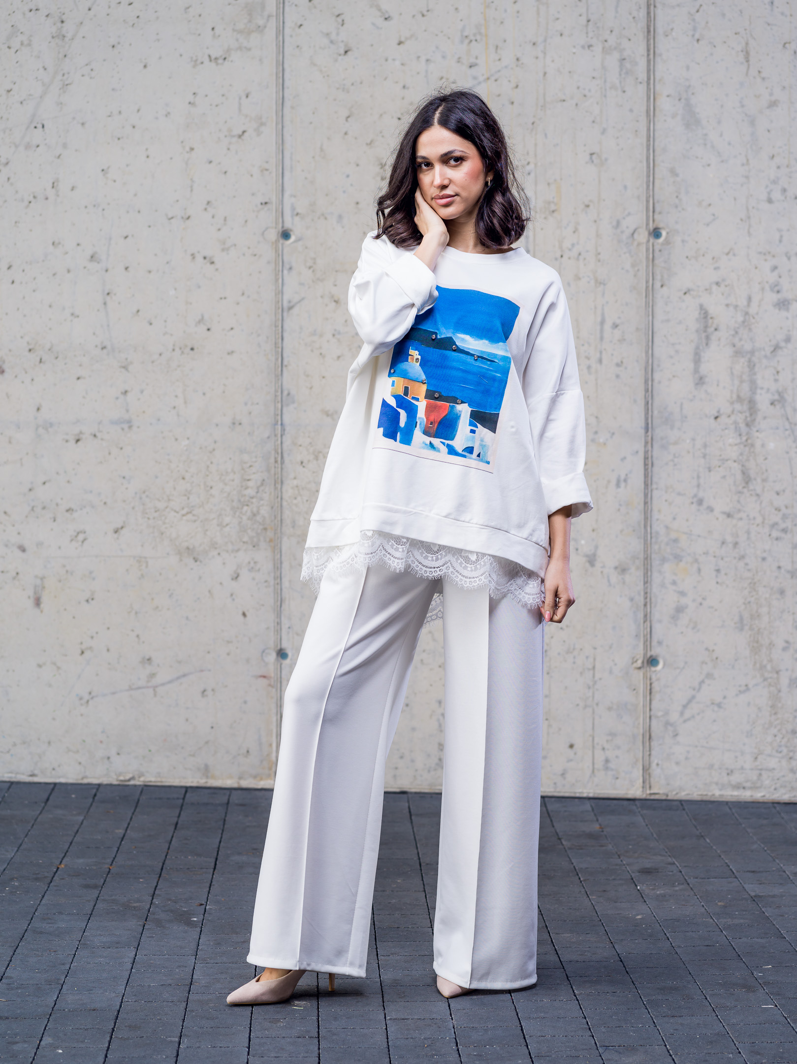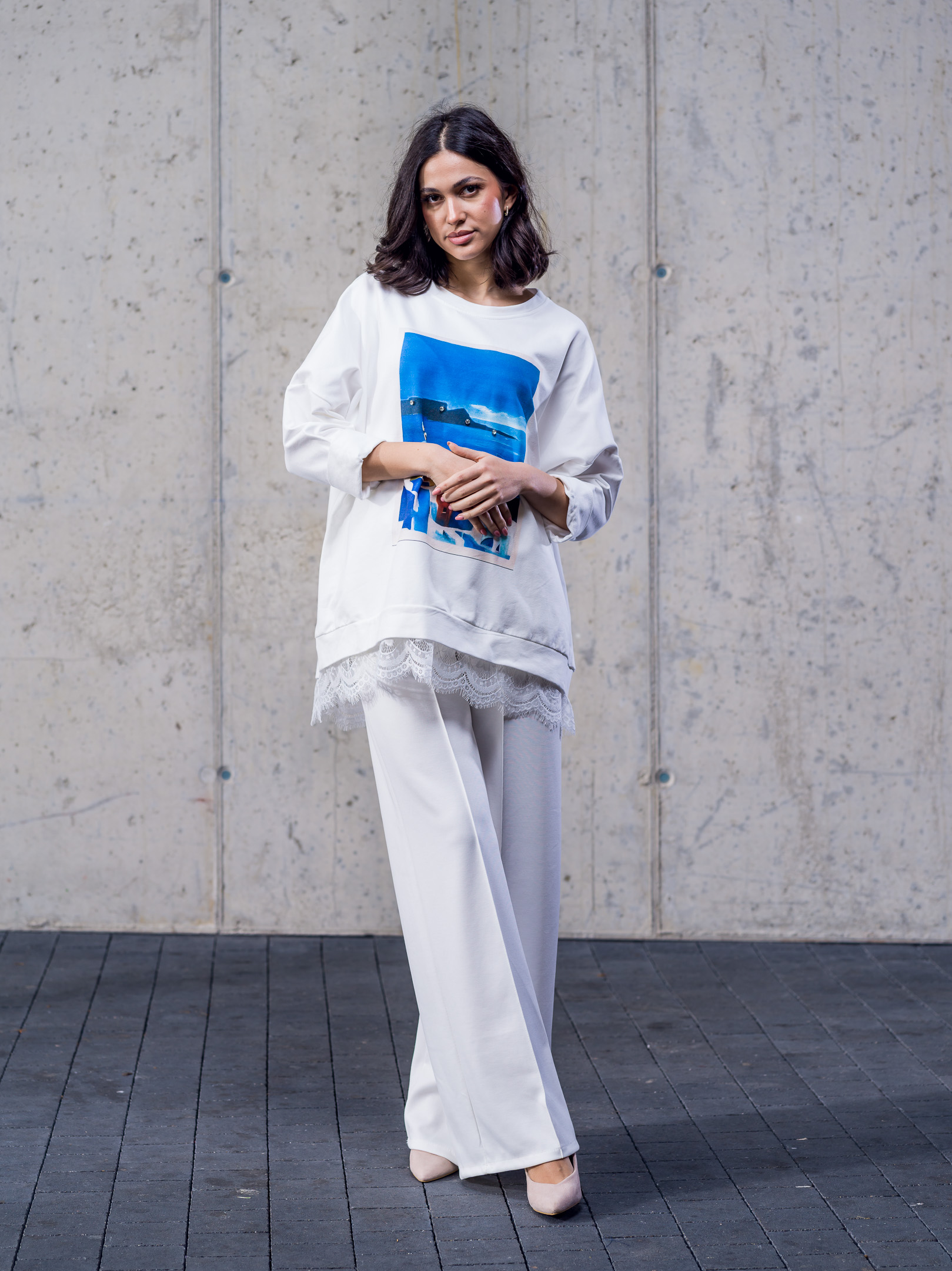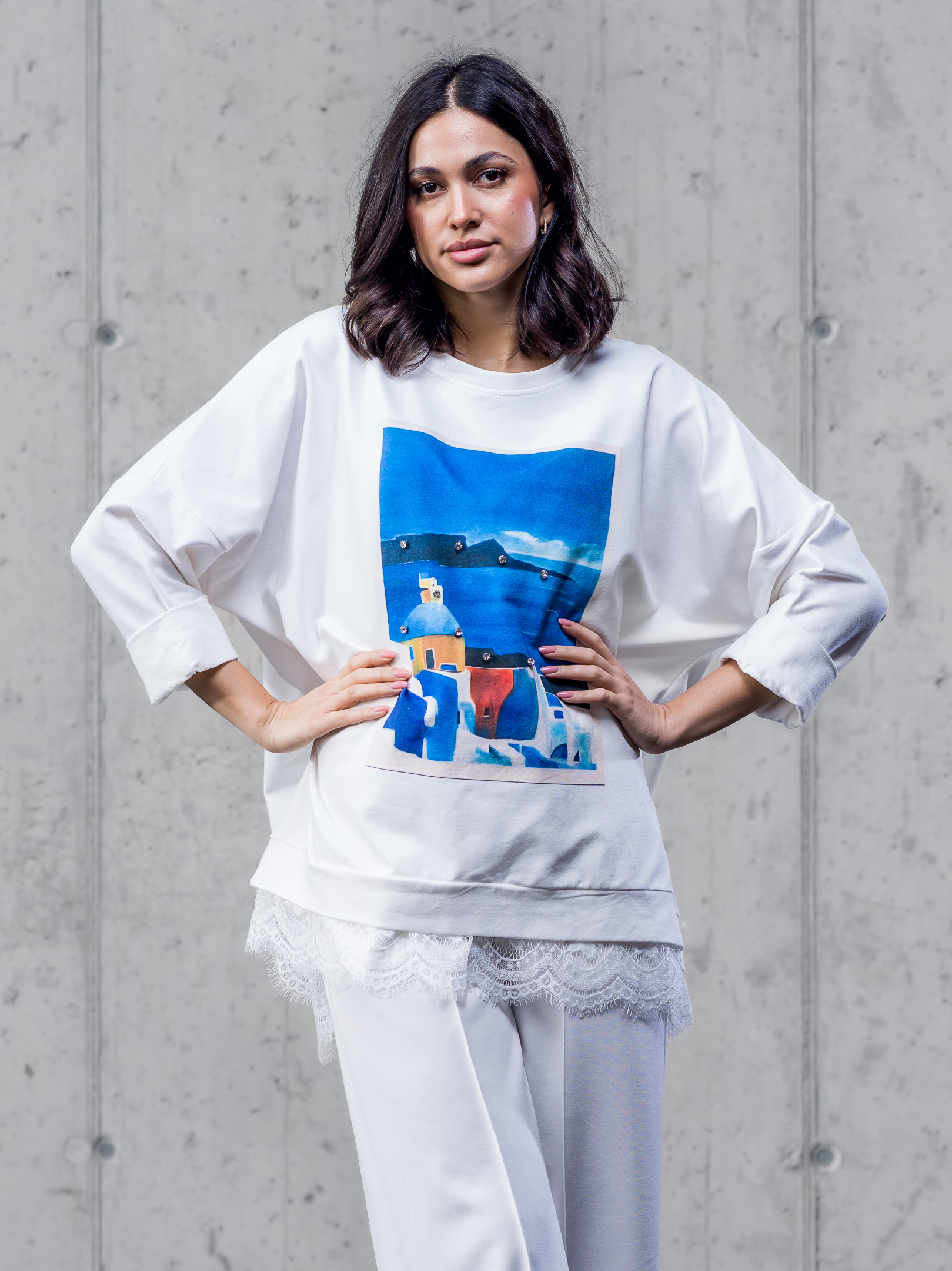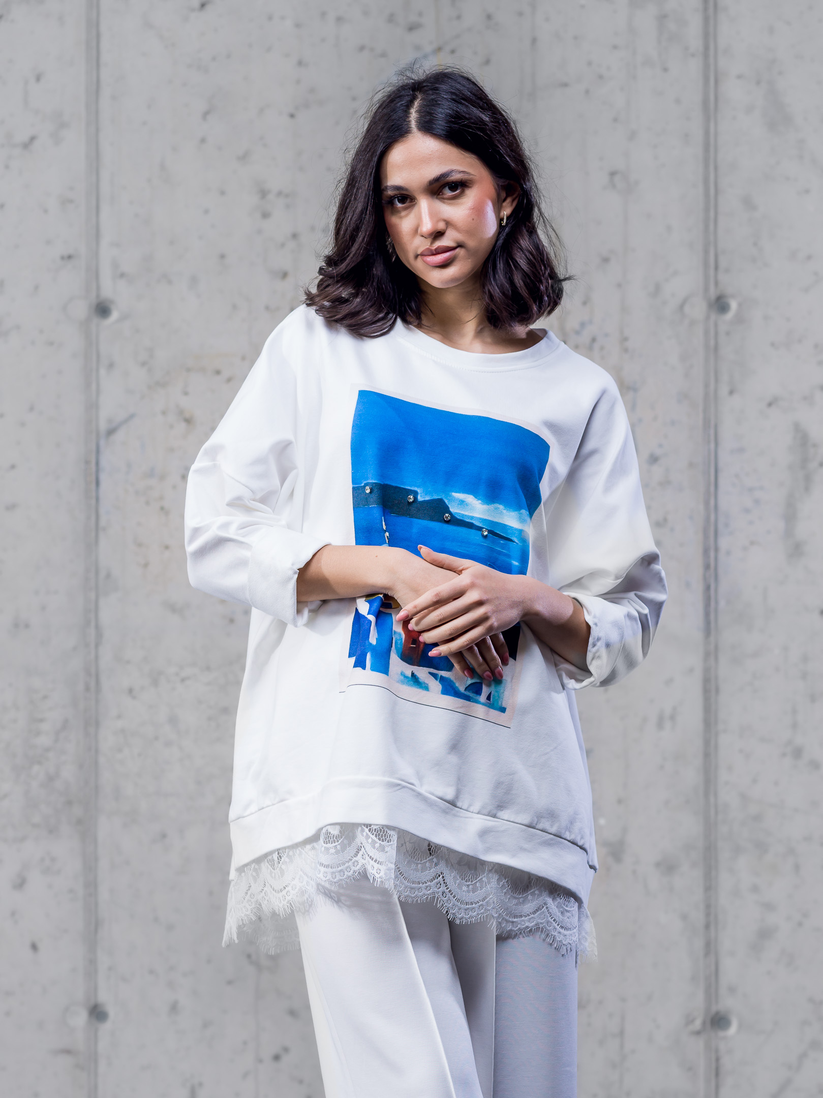 Bavlnená oversize mikina doplnená čipkou.