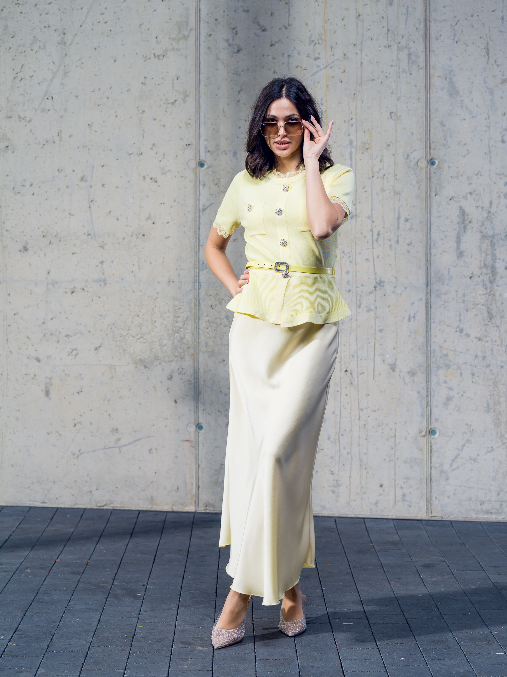 Tenký pulóver doplnený opaskom.