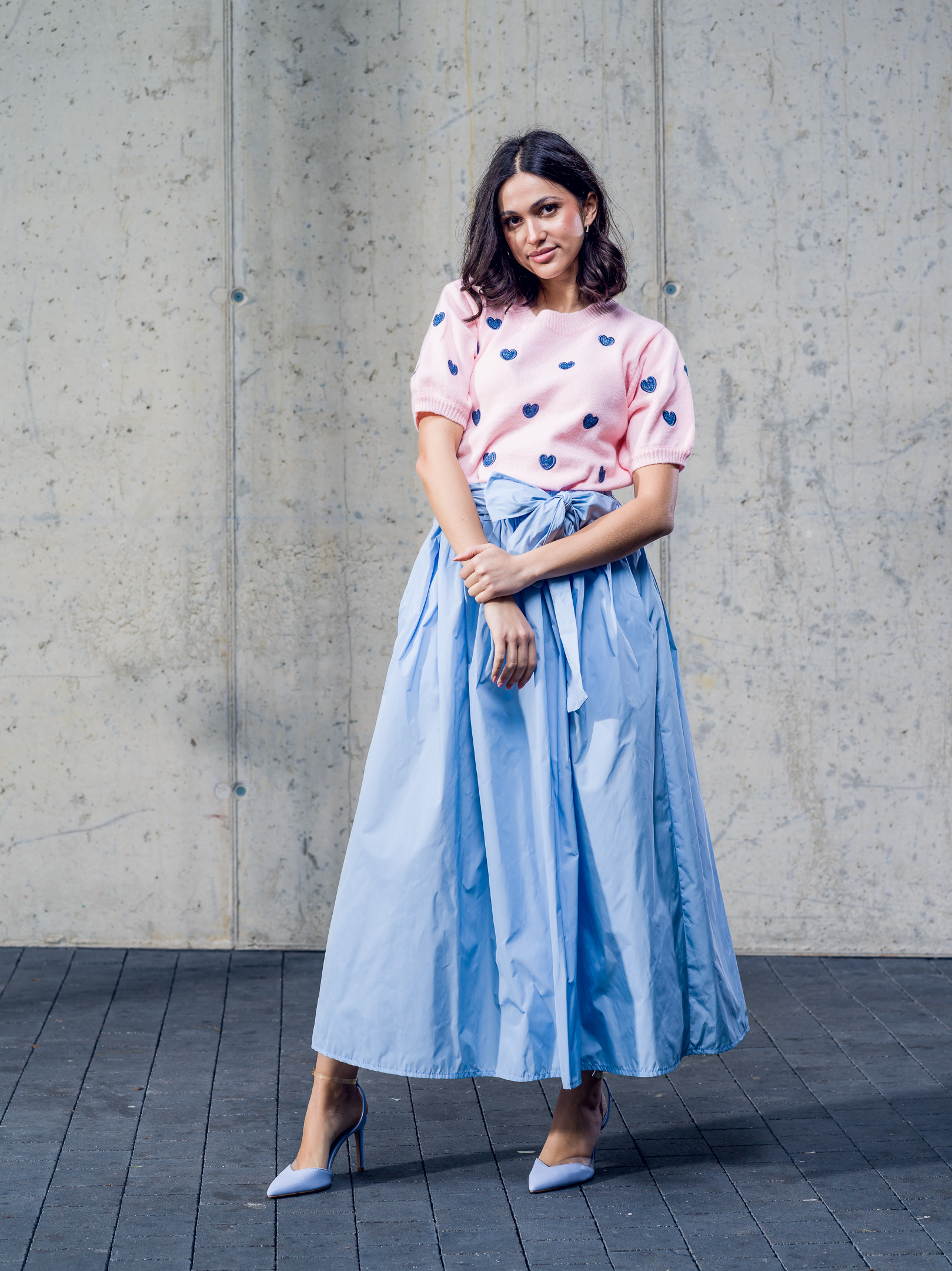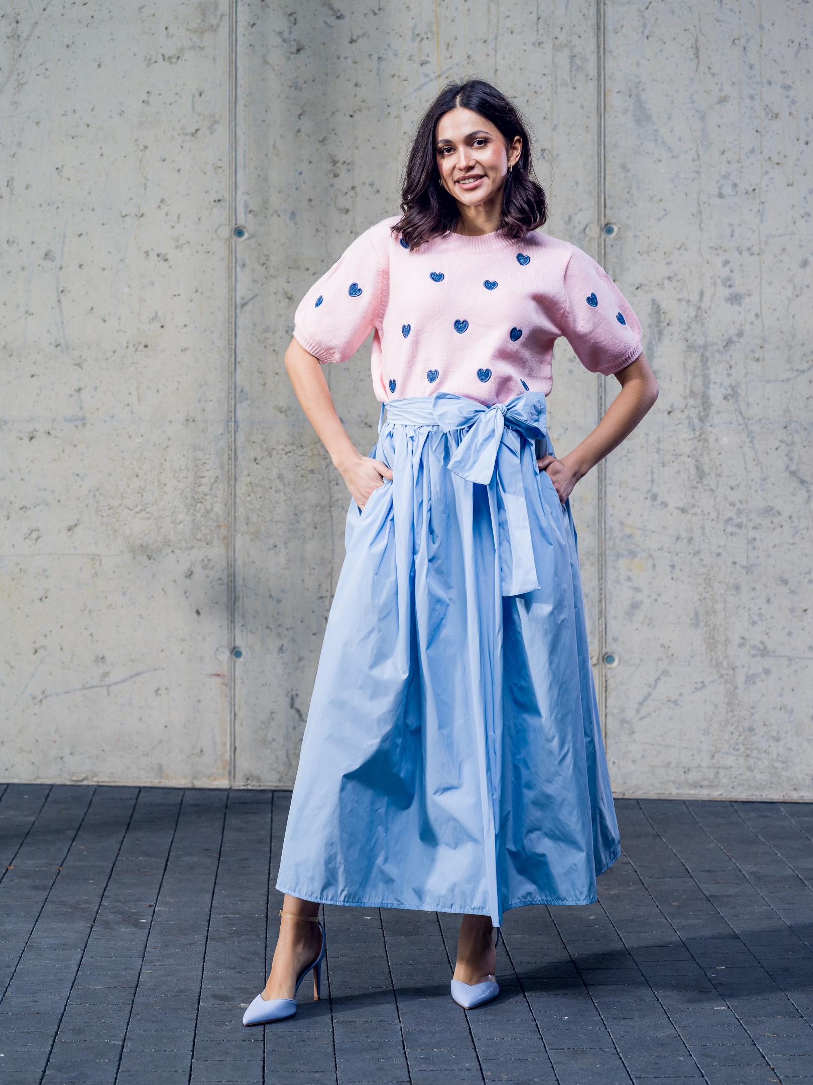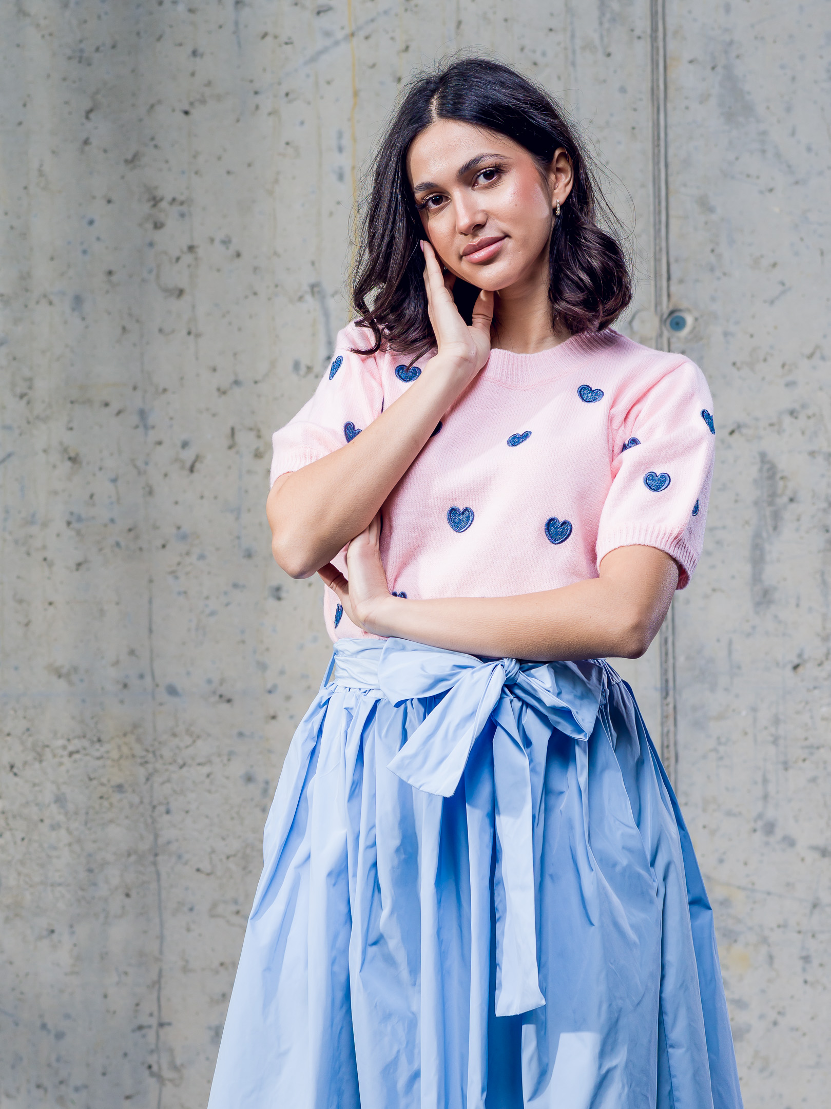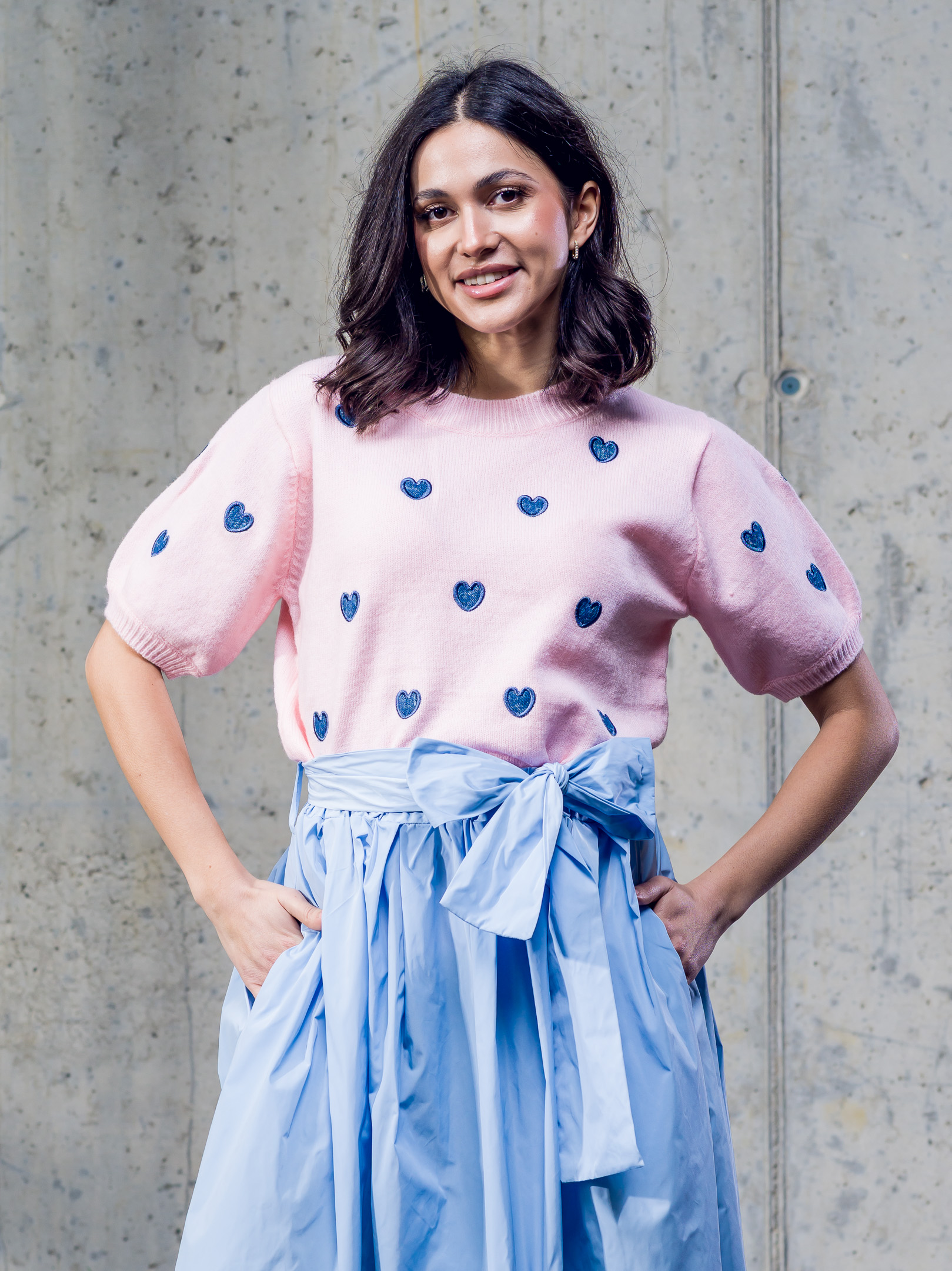 Kvalitný pulóver doplnený vyšívanými srdiečkami.