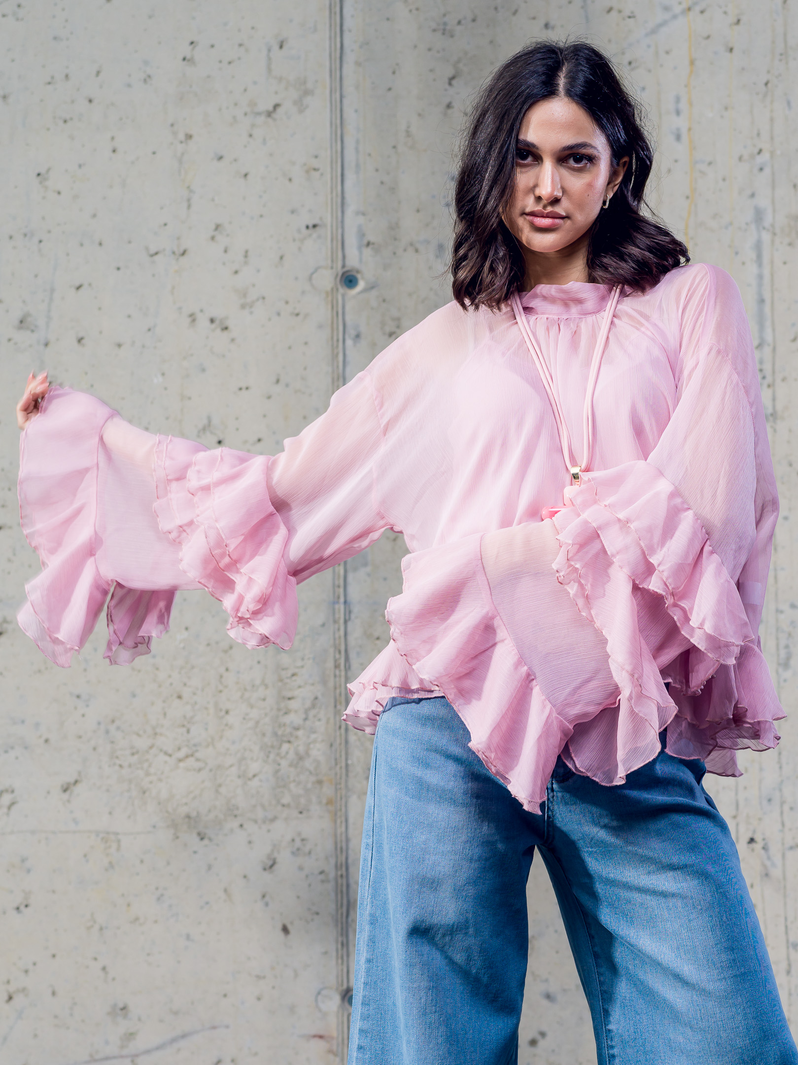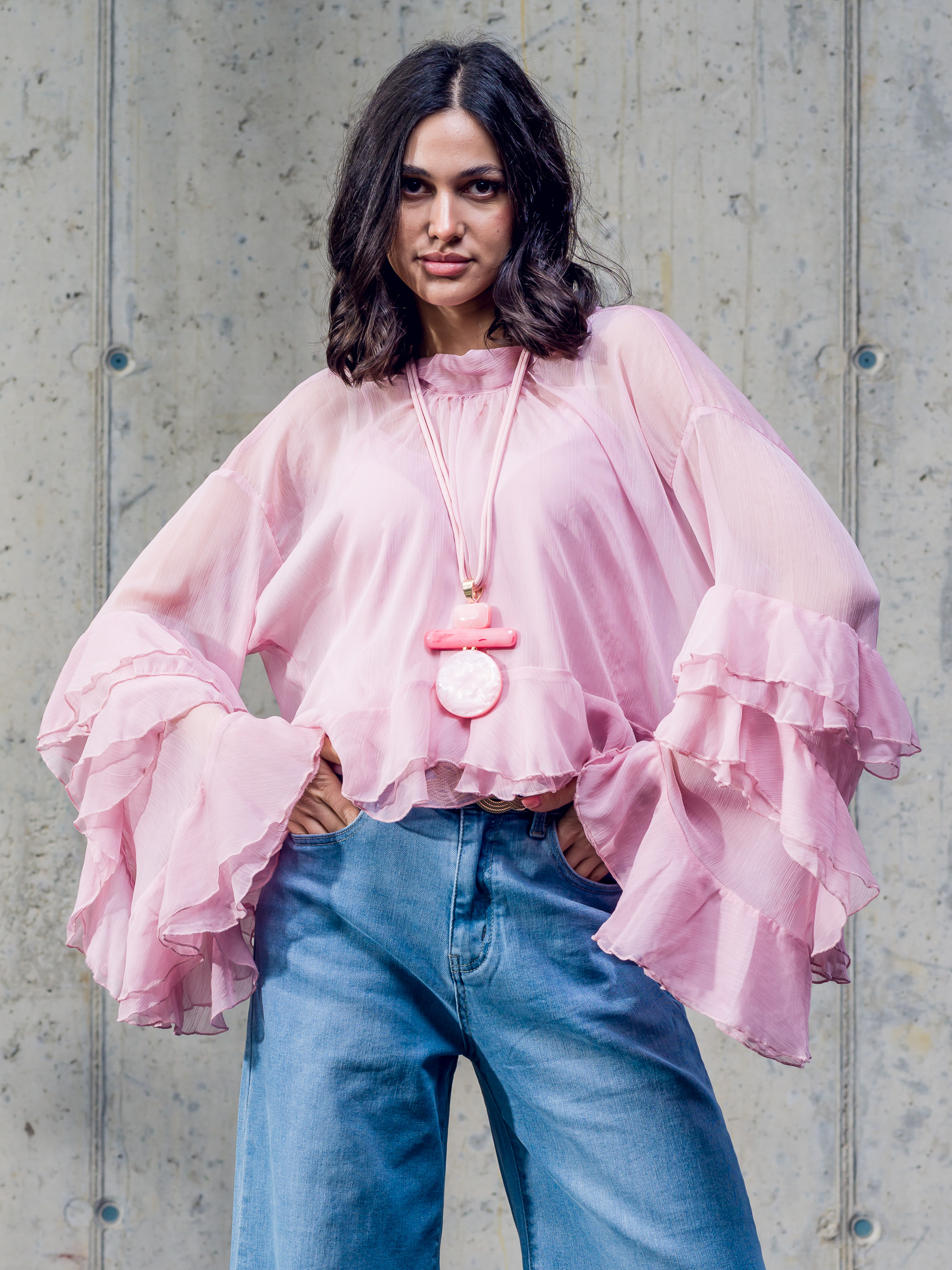 Ľahká jemne oversize volánové blúzka.